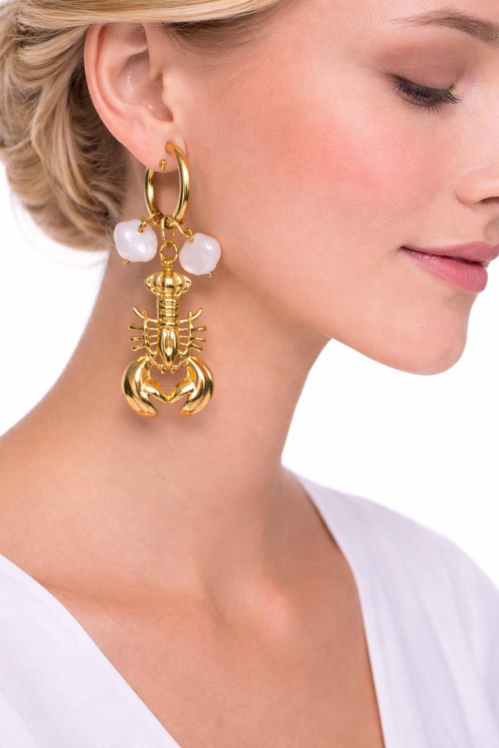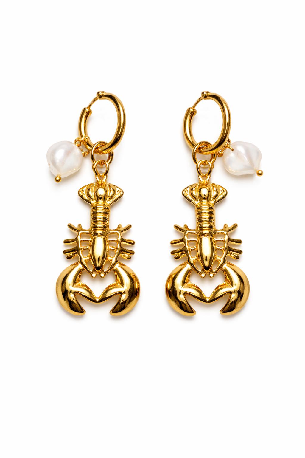 ✨ Boucles d’oreilles scorpion doré & perles