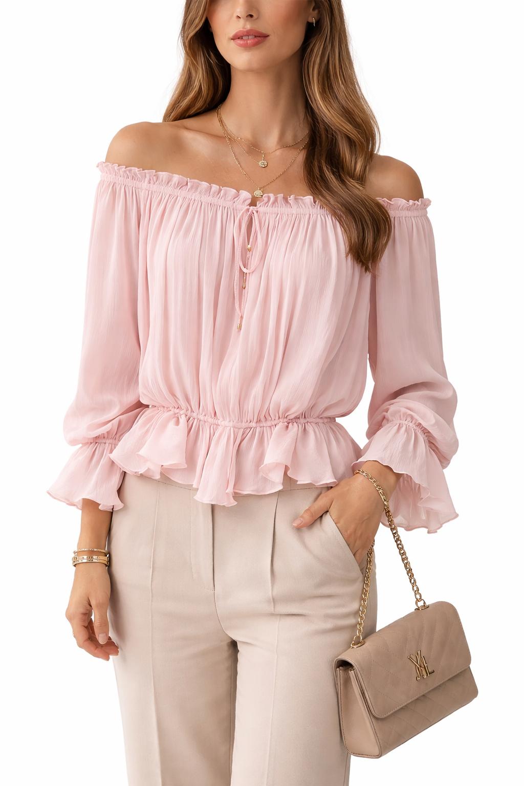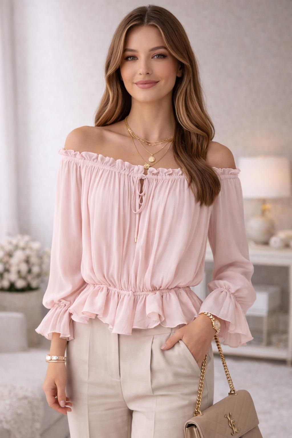 Blouse fluide rose poudré, au style romantique et féminin 💕