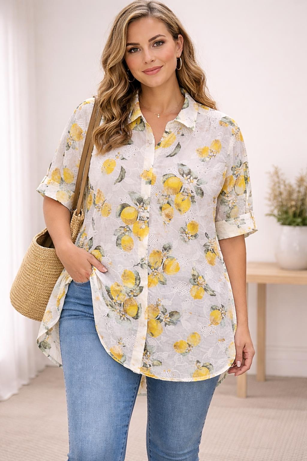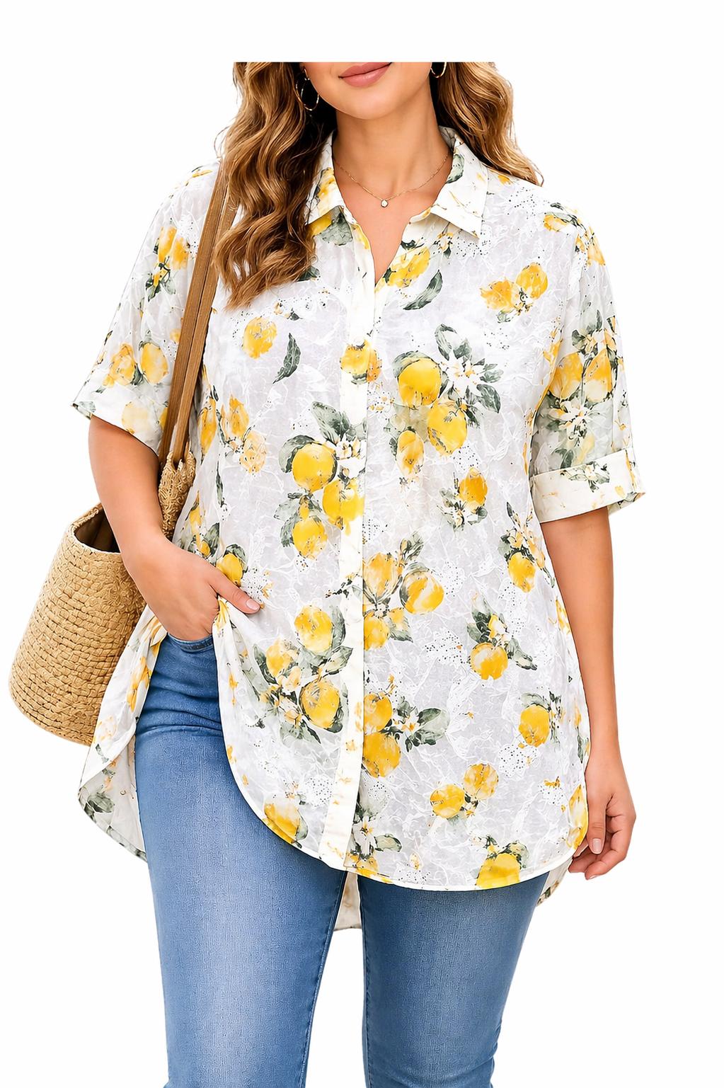 ✨ Chemise fluide imprimé citron – Style frais & estival