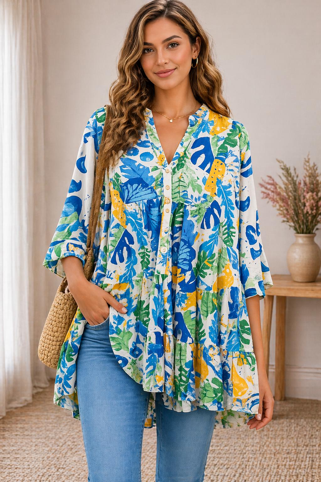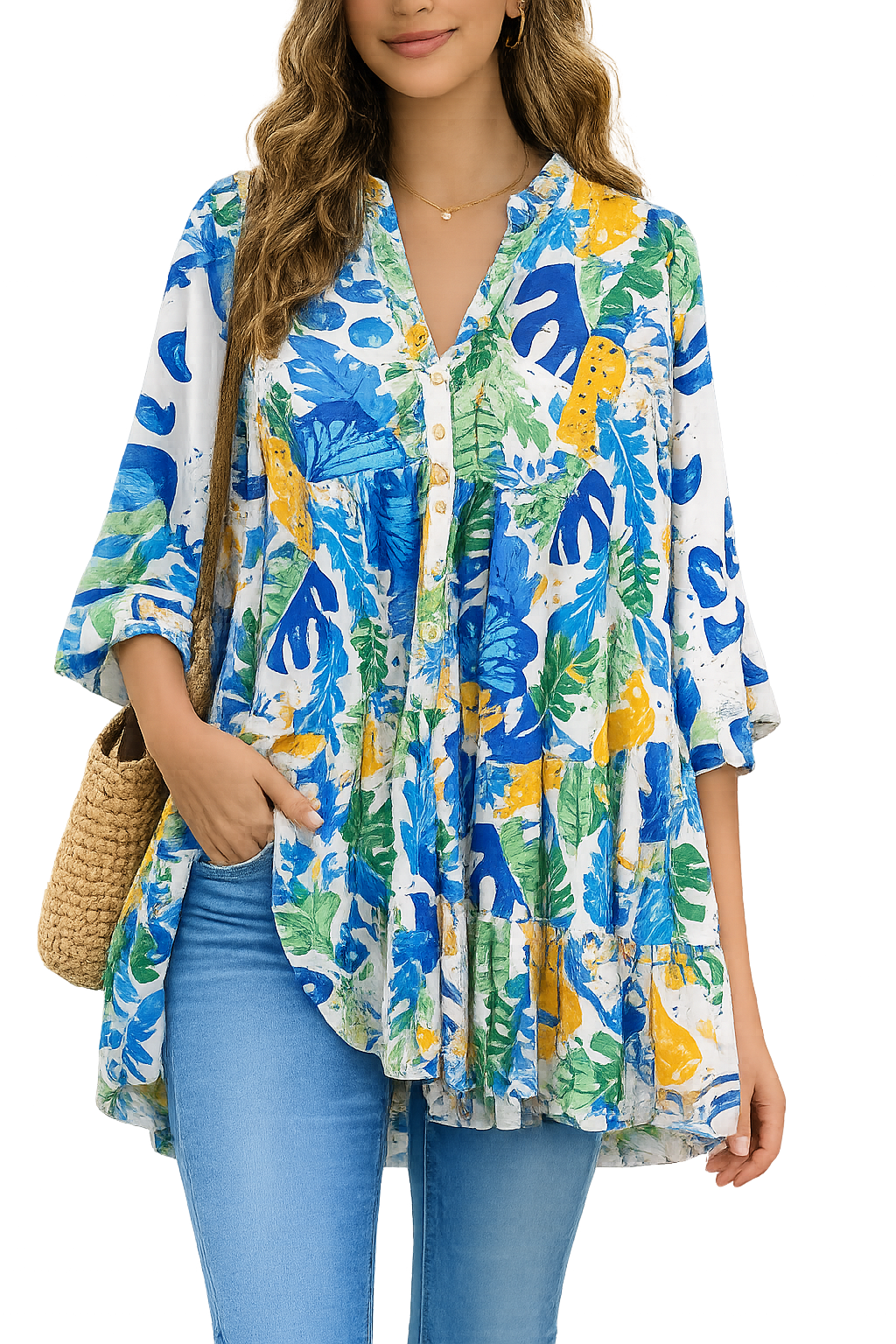 ✨ Blouse fluide imprimé tropical – Colorée & tendance