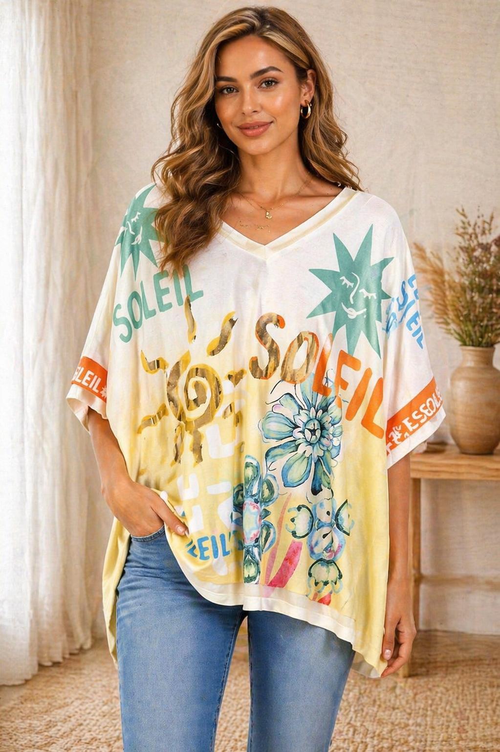 ✨ T-shirt oversize imprimé “SOLEIL” – Coloré & tendance